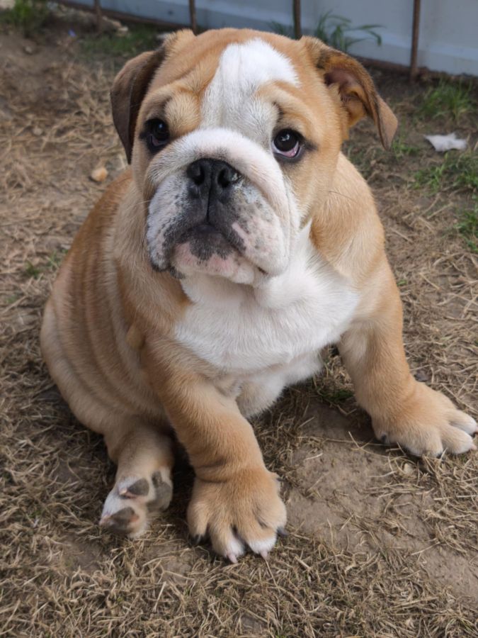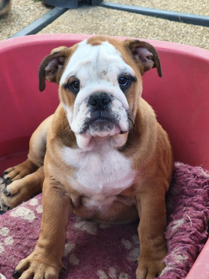 Chiots bulldog anglais lof, 1 mâle et 2 femelles nés le 17/05/2025.