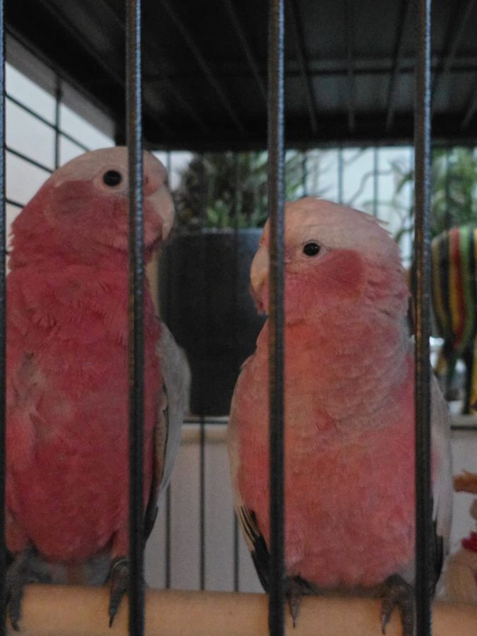 Un male et une femelle de cacatoes rosalbin 5 mois