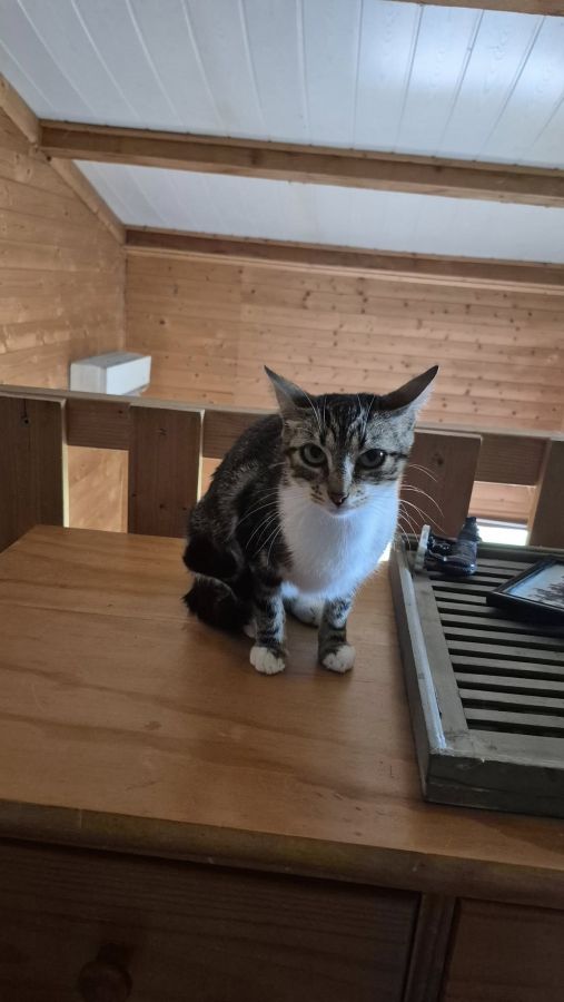Perle , un concentré de douceur, une toute jeune maman, qui a vécu dans la rue , avec ses deux bébés et qui espère trouver un foyer pour s 'y installer, elle est très calme et recherche seulement la douceur d' un canapé et le réconfort des caresses