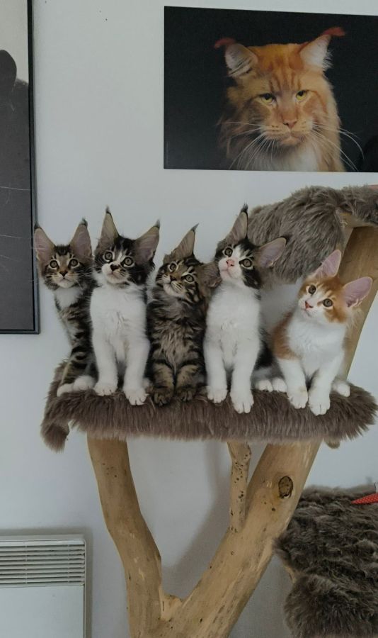 La chatterie des Redwood Coons vous propose a l'adoption ces 5 petits chatons, qui, au delà de leur jolie bouille sont de super minets qui ne cherchent qu'à faire la connaissance d'une famille aimante et attentionnée.