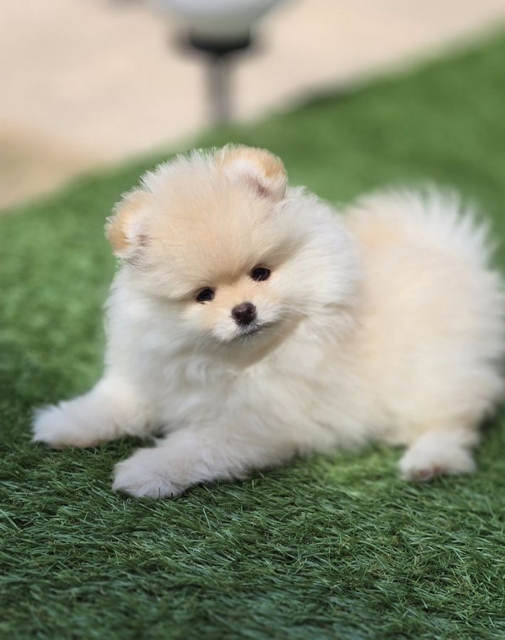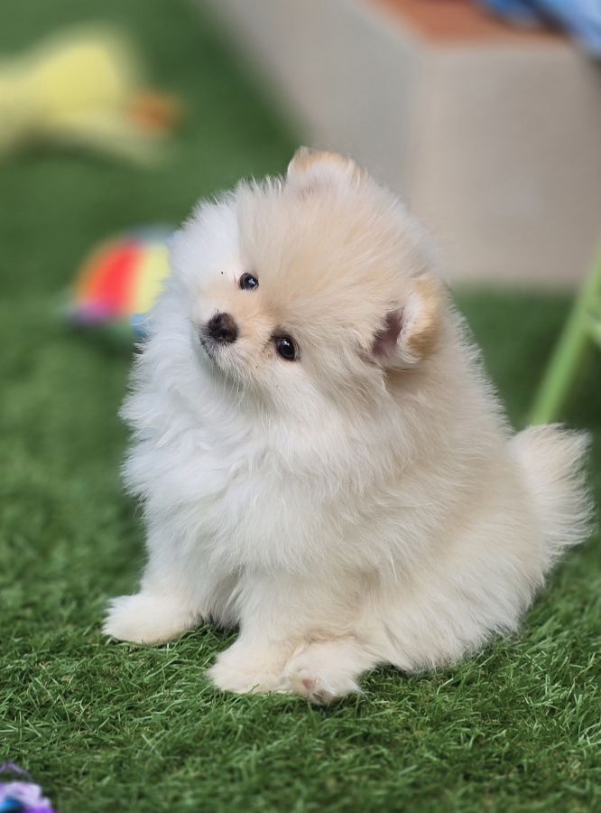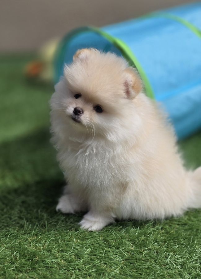 Véritable Spitz naine Poméranian, superbe fourrure et volumineuse, une vraie petite oursonne 🐻  même à l’âge adulte, belle lignée russe.