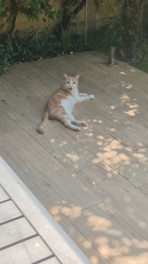 Il passe 90% de son temps dans les jardins qui jouxtent notre maison. Il s'épanouira dans un environnement comme celui-là ou à la campagne. C'est un aventurier débrouillard (il sait monter et descendre de n'importe quel arbre depuis qu'il est petit) et un chasseur.