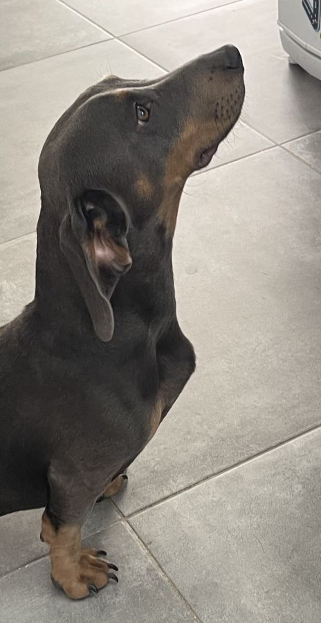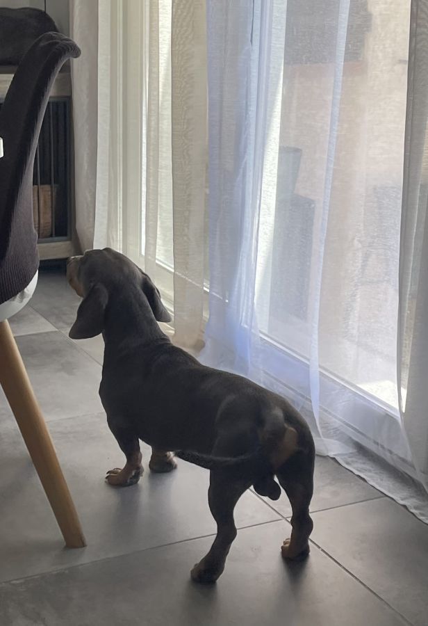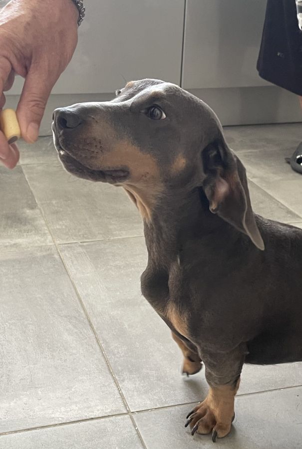 Mon jeune mâle Teckel standard à poil ras est disponible pour saillie. Il est de couleur bleu tan. Il est né le 20 octobre 2024.