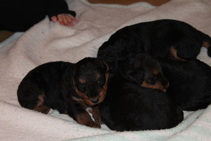 A réserver 5 chiots airedale terrier nés le 9 septembre, lignée chasse sur plusieurs générations , extra aux sangliers , parents visibles . Les chiots seront sociabilisés, pucés ( nouvelle puce ) , déparasités , vaccinés ; inscrits au lof et certificat vétérinaire .