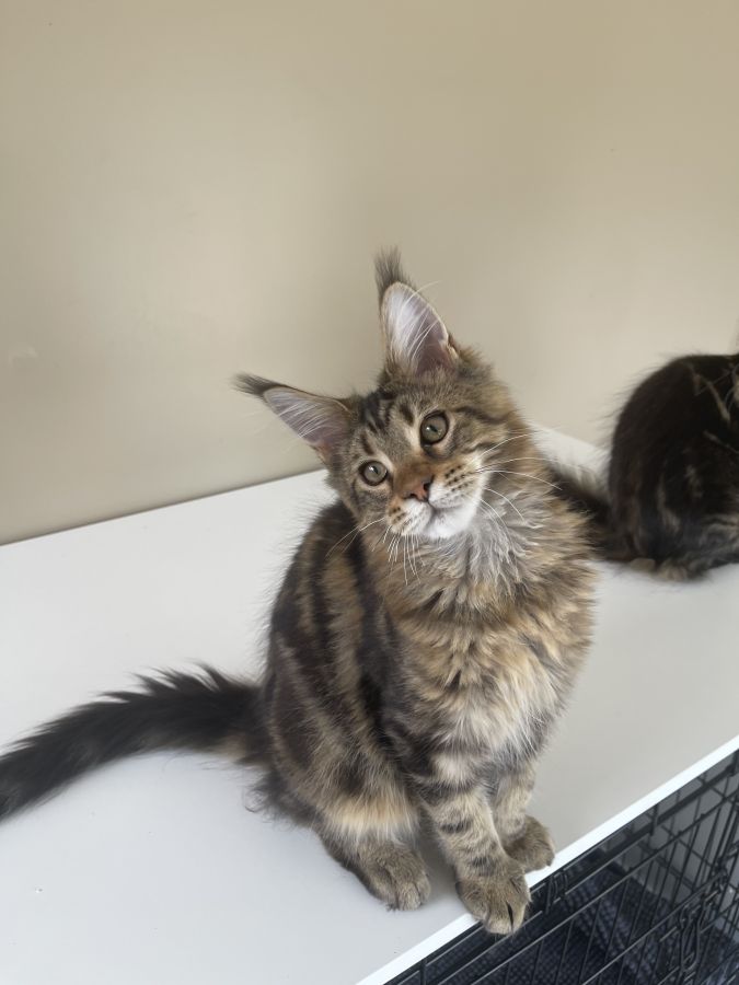 Maine Coon Loof, nés le 26/03 sur une portée de 3 chatons.
