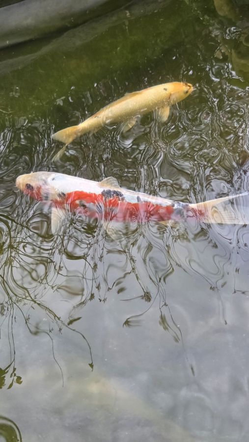Vds koïs 15 à 25 cms. 50€ celle, seule sur une photo, ainsi que la Kin Ki utsuri (jaune/noire marbré) 30€ ou 20€...