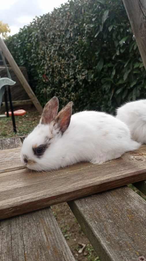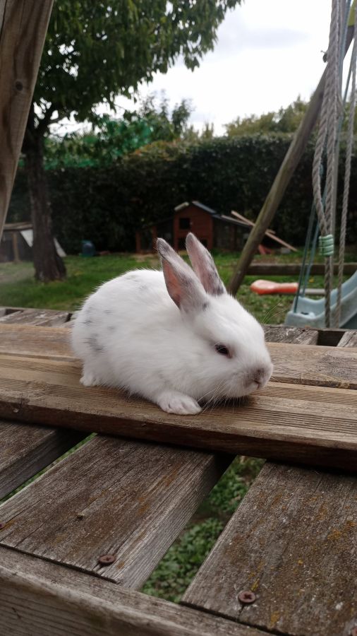 Je propose à l'adoption 3 lapereaux nains tachetés.