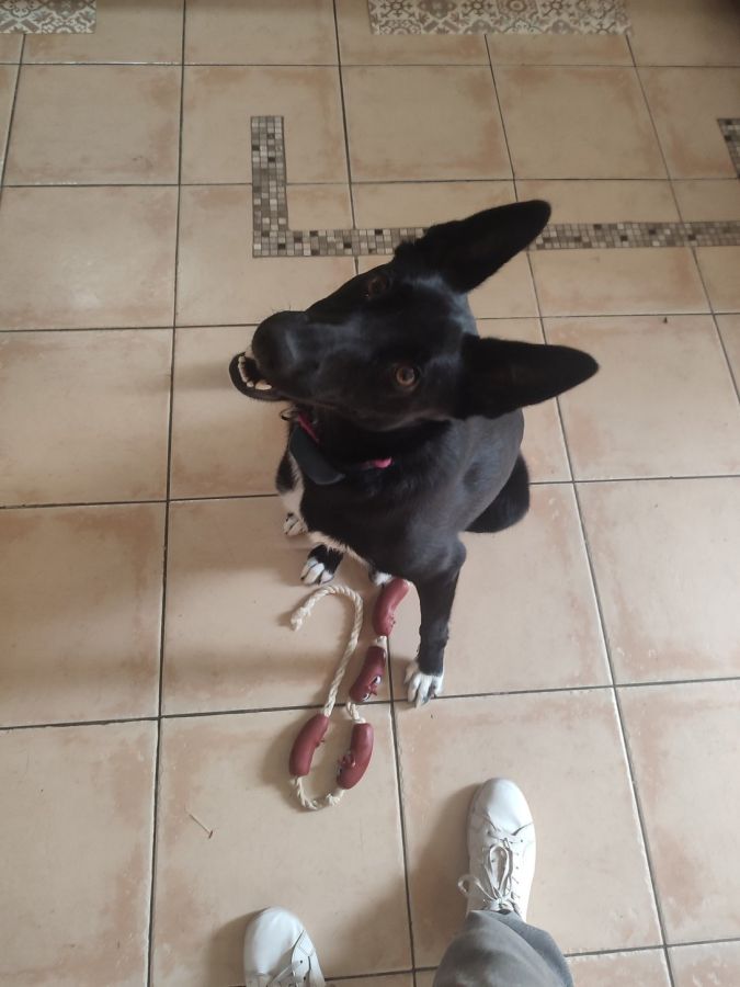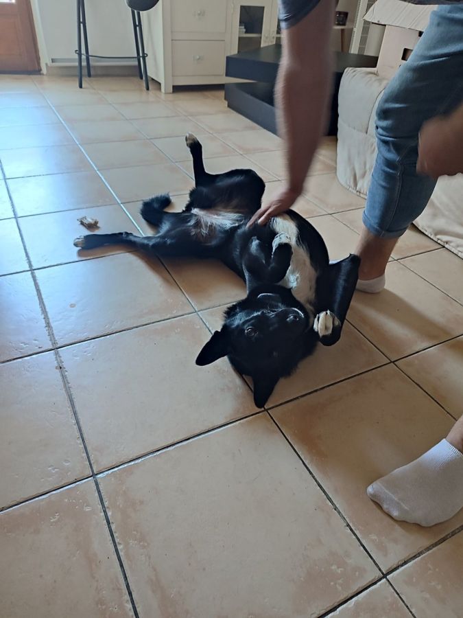 • Elle connaît les ordres de base (assis, pas bouger, couché, cherche…), mais a encore besoin d’éducation et de stimulation