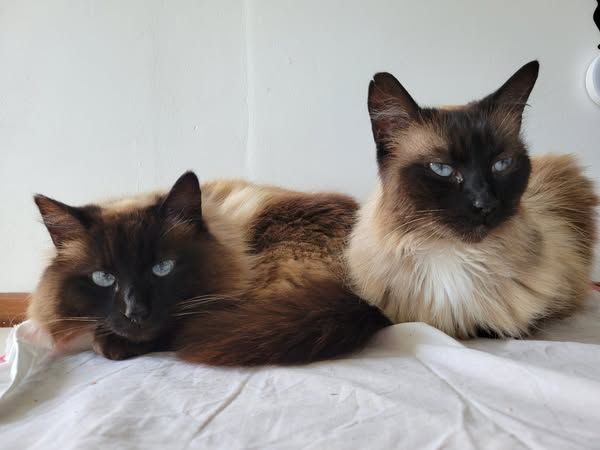 Moumoune et Blanco (mère et fils âgés de 10 et 5 ans ) sont à la recherche d’une famille d'accueil ou d’une famille d'adoption pour ces 2 types sacrés de Birmanie adorables.