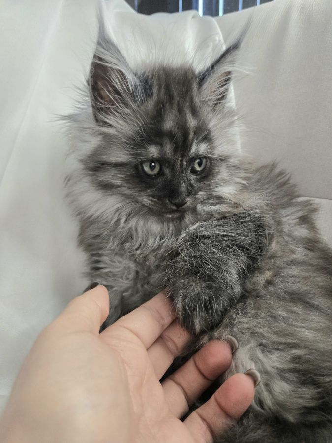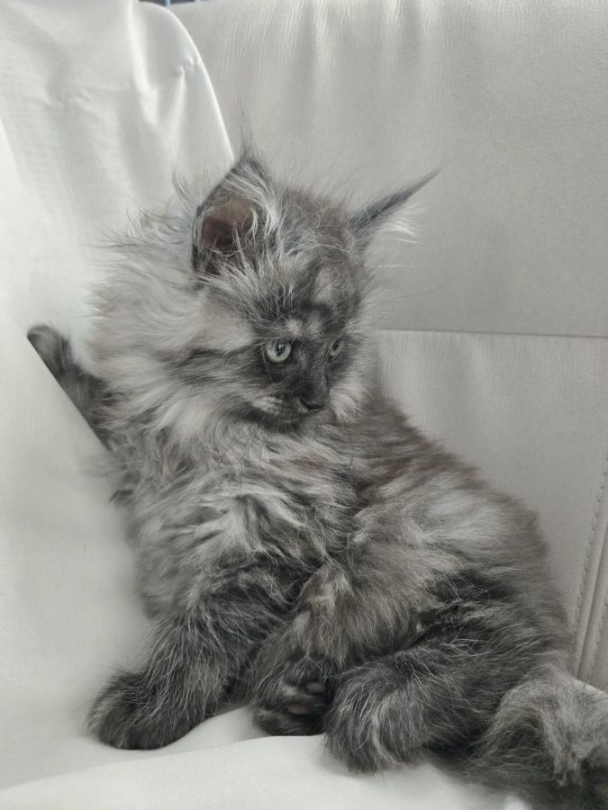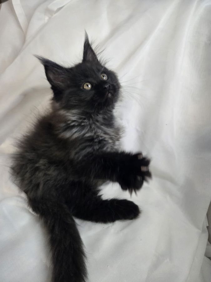 Élevage familial Mainqueen74 propose à la réservation de magnifiques chatons Maine Coon Black Smoke né le 02 août 2025 une couleur rare et recherchée.