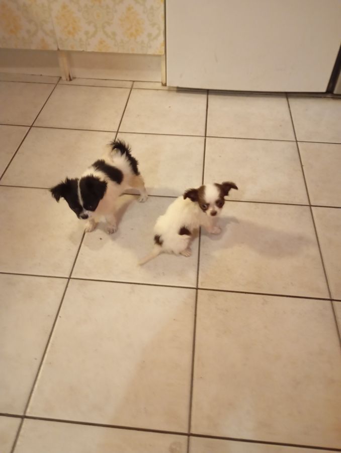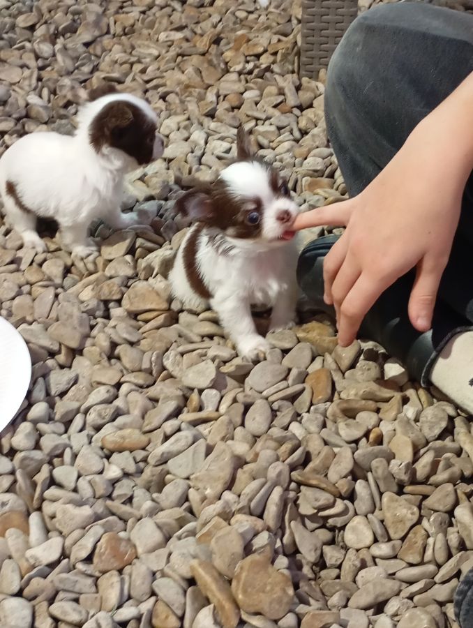 Une mini femelle blanche tâche chocolat ( pas encore disponible car visite chez le vétérinaire prévue petit souffle cardiaque léger détecté lors de sa visite des 2mois)