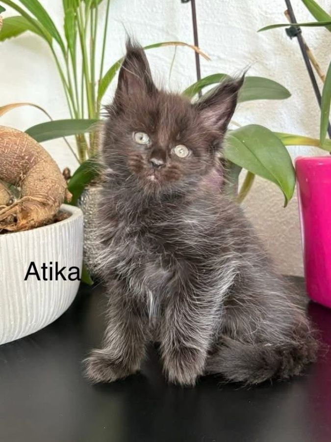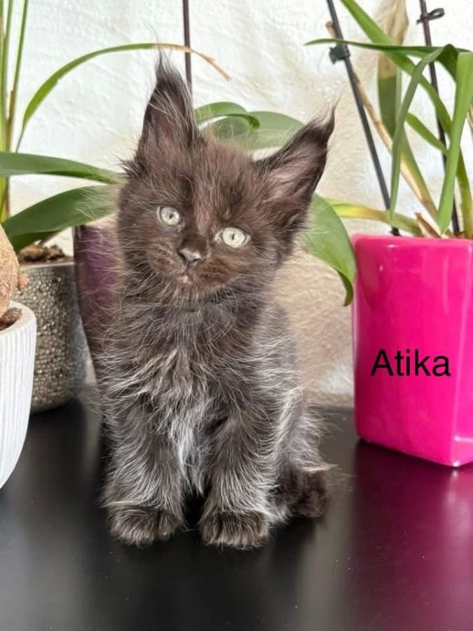 Disponible à la réservation chaton Maine coon femelle née le 17/08/2025 inscrite au Loof d’une portée de 4 chatons.