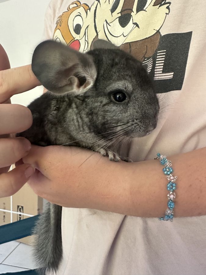Bébé chinchilla née le 25 juin de couleur gris foncée avec le ventre blanc
