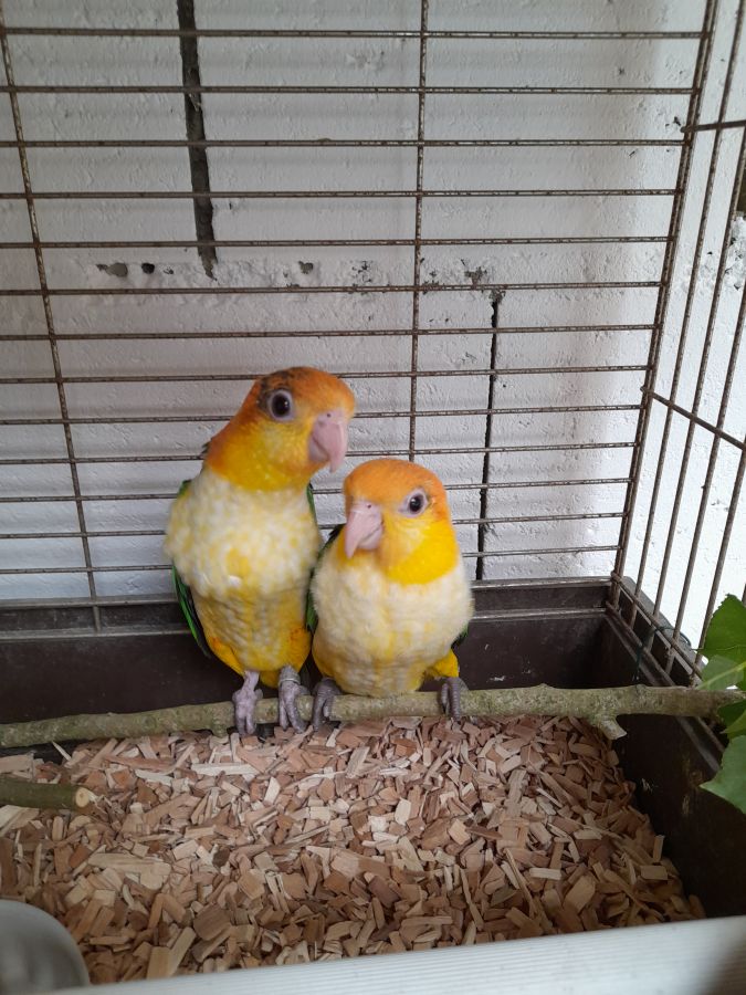 perroquets caïques mâles et femelles. Ils ont 2 ans. La femme est a...