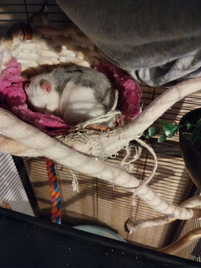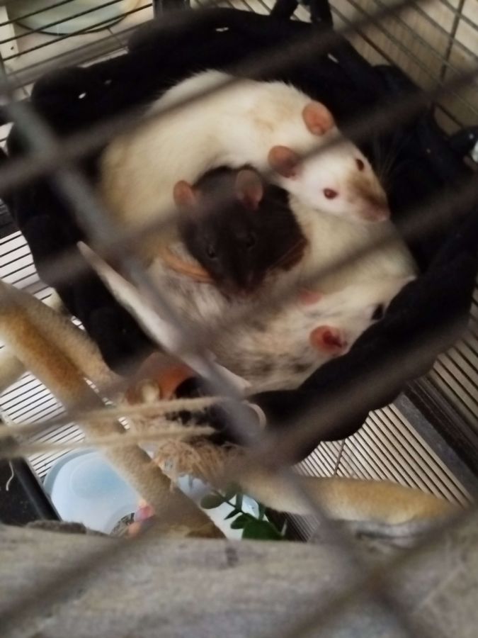 Elles ont environ 1 an et demi. Lucette, la rate coloré noir et blanc est la seule à avoir eu des problèmes de santé, 2 tumeurs mammaires à environ 2 mois d'intervalle. Elle n'a jamais montré de signe de faiblesse, baisse d'appétit ou autre.