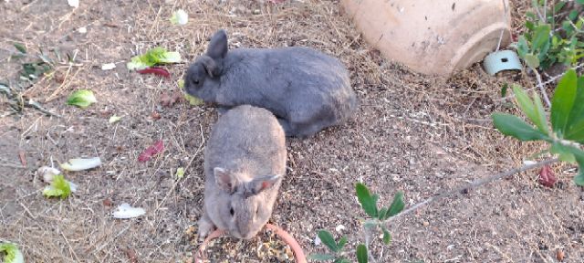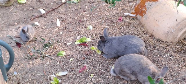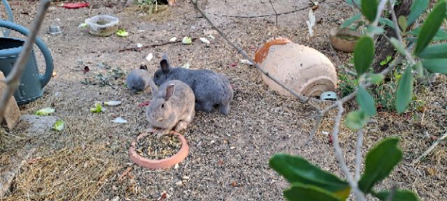 j'ai 1 couple de lapins tout gris , un gris fonce et un gris clair, ceux sont des lapins de 2 ans , ils vivent en enclos extérieur , donc en liberté, ce ne sont pas des lapins d'intérieur, mais pour le plaisir de les voir évoluer, je les donne avec leur bb de 2 mois tout gris lui aussi