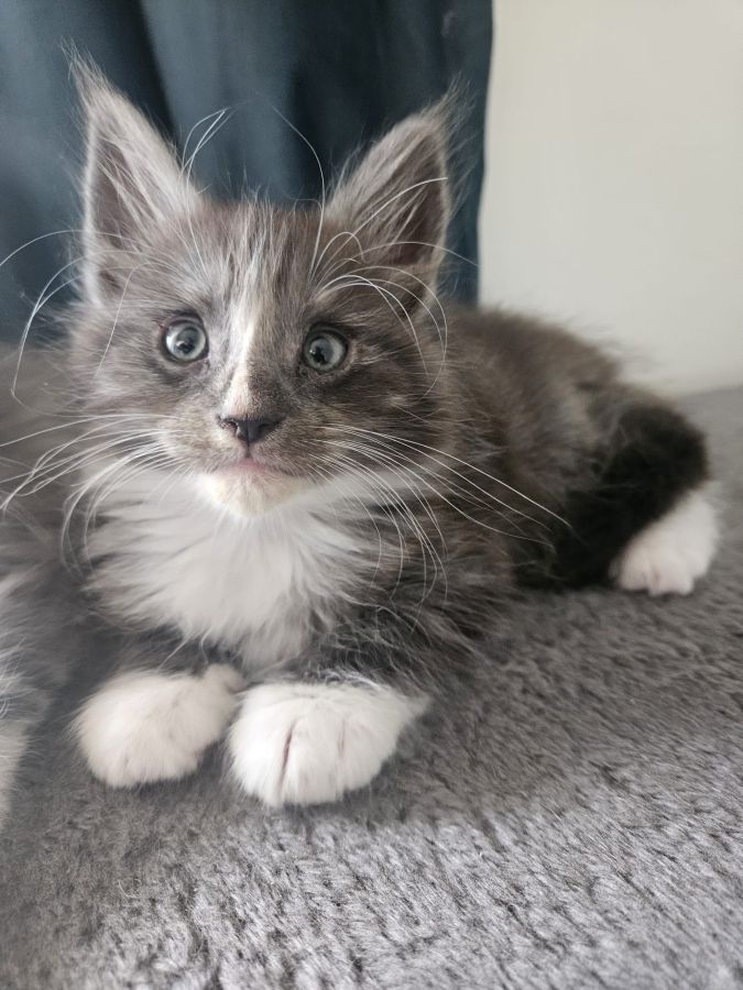 Azur un mâle Black Smoke et Blanc né le 5 août à Quimper.