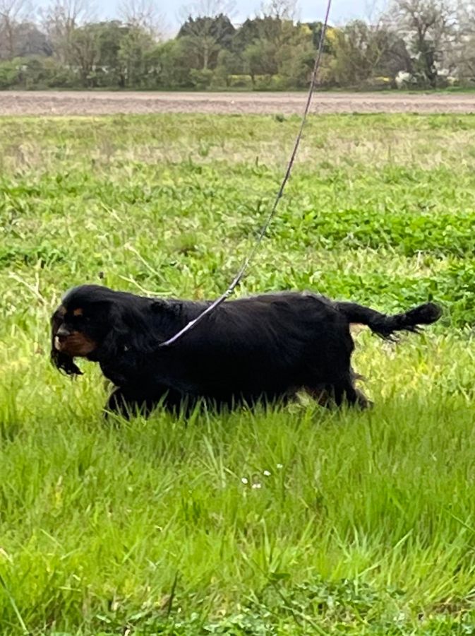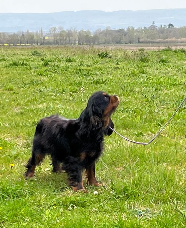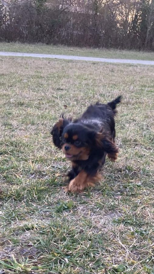 Shouchana, est une femelle cavalier king charles noire et feu avec une bonne bouille à croquer elle est habituée à vivre en maison avec des enfants elle est née le 2 NOVEMBRE 2021, elle a été élevée uniquement à la maison et elle en a les bonnes habitudes elle est propre et marche en laisse elle est d'une extrême douceur et aime tout le monde elle est sympa, agréable à vivre et elle apprécie tout particulièrement les papouilles la vie de famille est faite pour elle, elle saura vous accompagner au quotidien avec joie et délicatesse c'est la baba cool par excellence elle connait les chats et les chevaux elle est puçée, à jour de vaccination échographie cardiaque faite grade 0 n'hésitez pas à nous joindre au 04.68.79.46.07 si vous avez besoin de renseignements la concernant