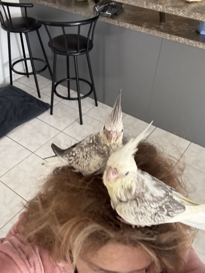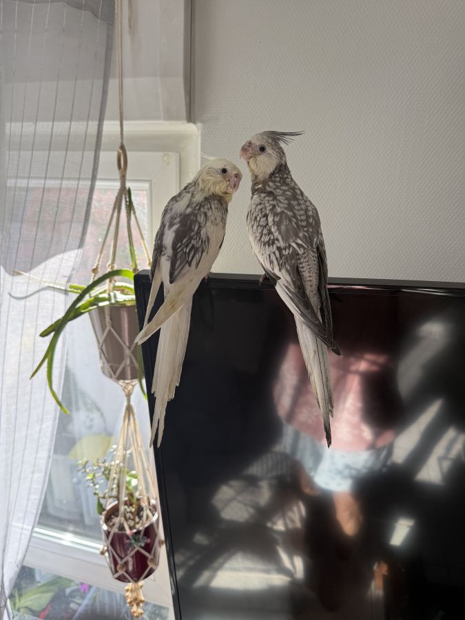 (Éleveuse)Calopsitte eam deux mâles en cours de sevrages bagues et sexages effectués