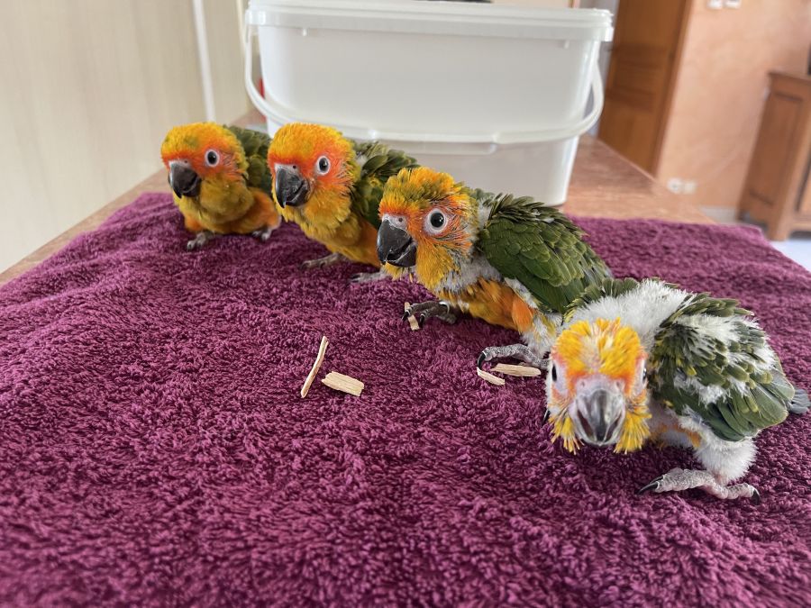 conure Soleil élevé mains sexage ADN et certificat de cession fourni, a réserver au 0649550397
