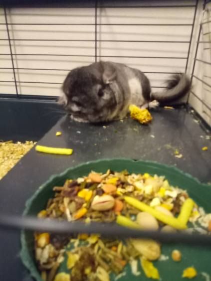 Bonjour je vends un chinchilla mâle âgé 5 mois il et gentil adorable avec les enfants il aime se promener il aime sortir de sa cage assez souvent il est gourmand mange fruit et légumes foie graines vends avec sa cage si vous avez pas de cage se 150euro cage et chinchilla si vous prenez juste le chinchilla se 100 euro avec son bac à sable et le sable prix non négociable envoyé message répond rapidement merci