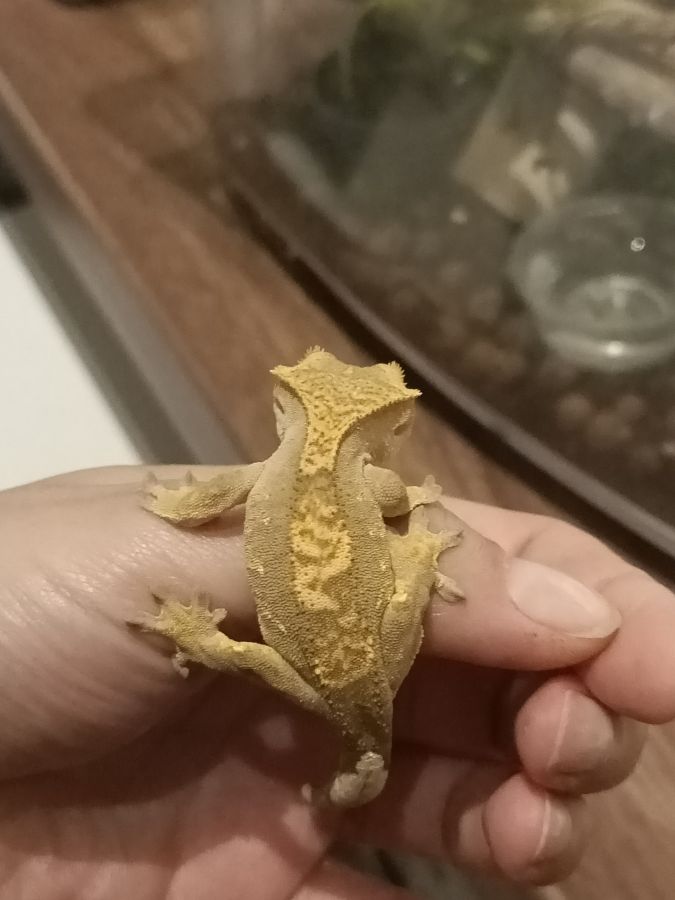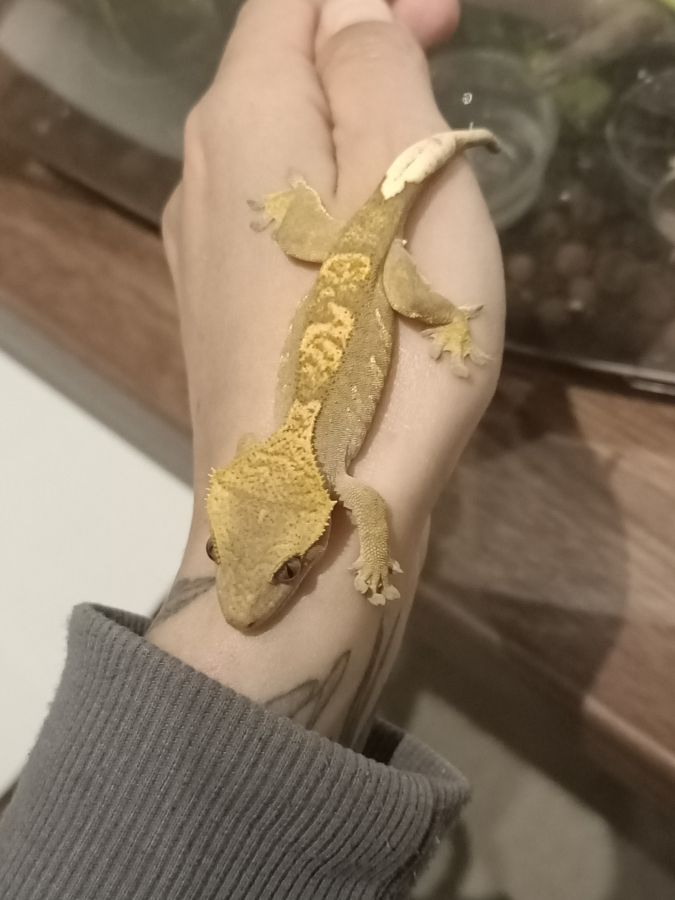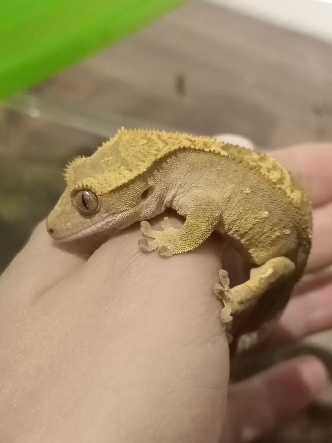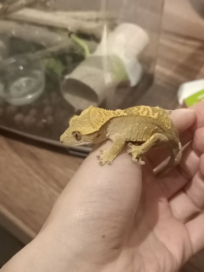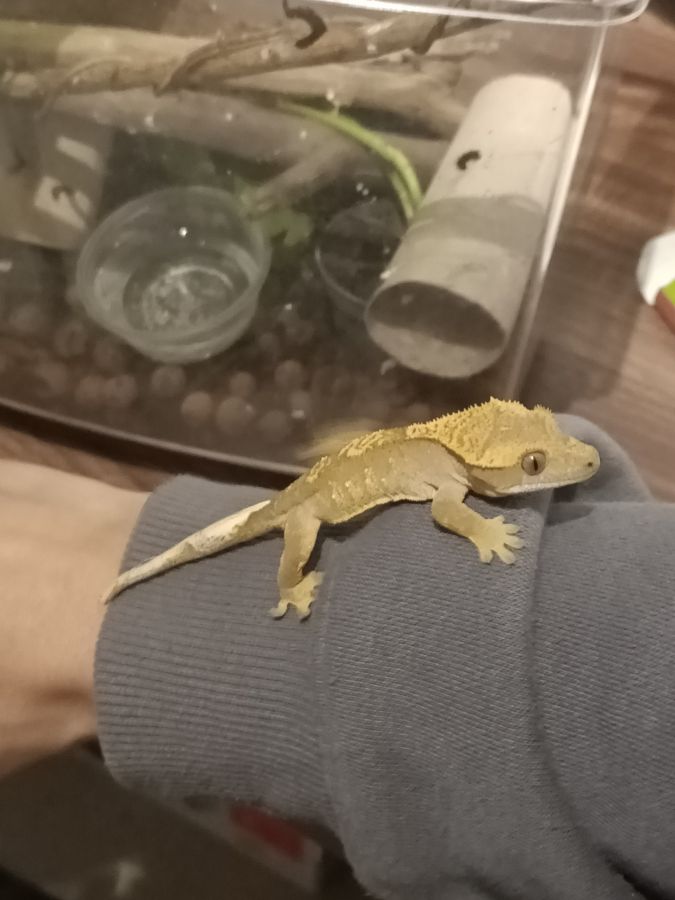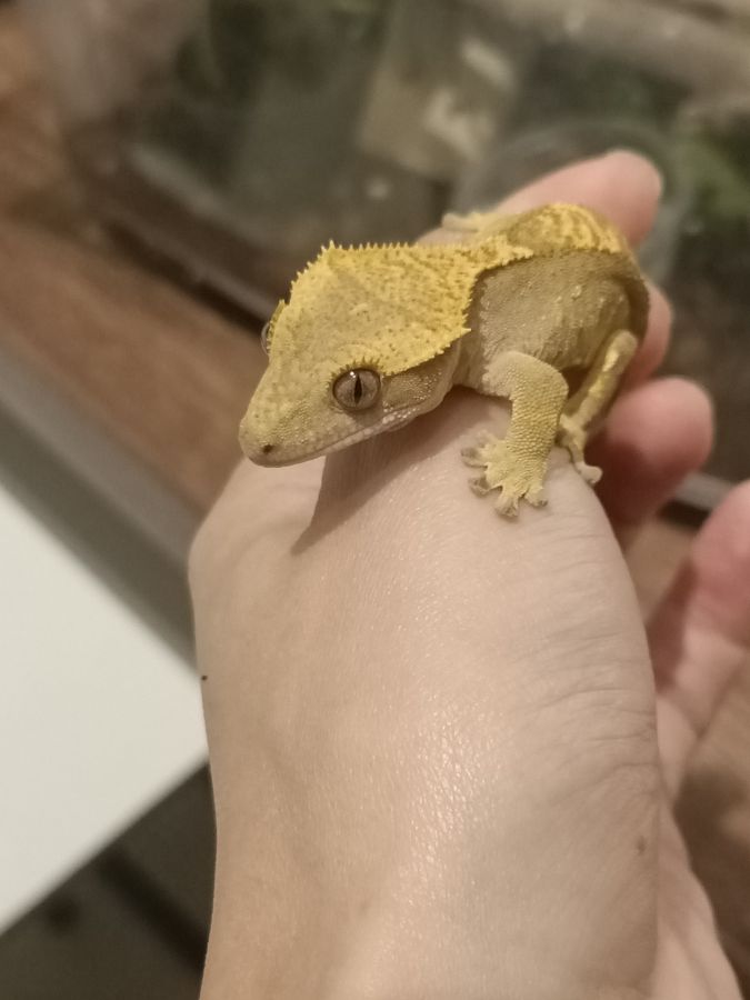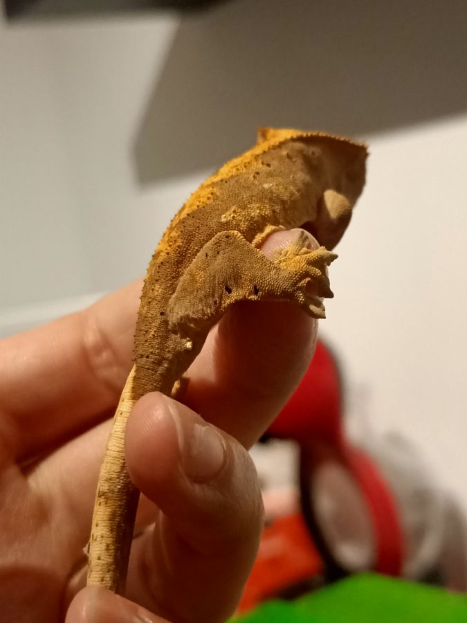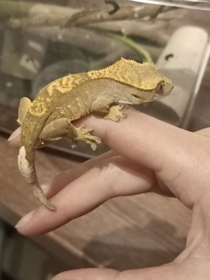 Bonjour je vends un gecko à crête juvénile harlequin, né à peu près en juin-juillet. Les parents sont dans un terrarium bio actif avec pleins de cachettes et de plantes naturelles alors je vois les bébés apparaitre au fur et à mesure qu'ils grandissent.