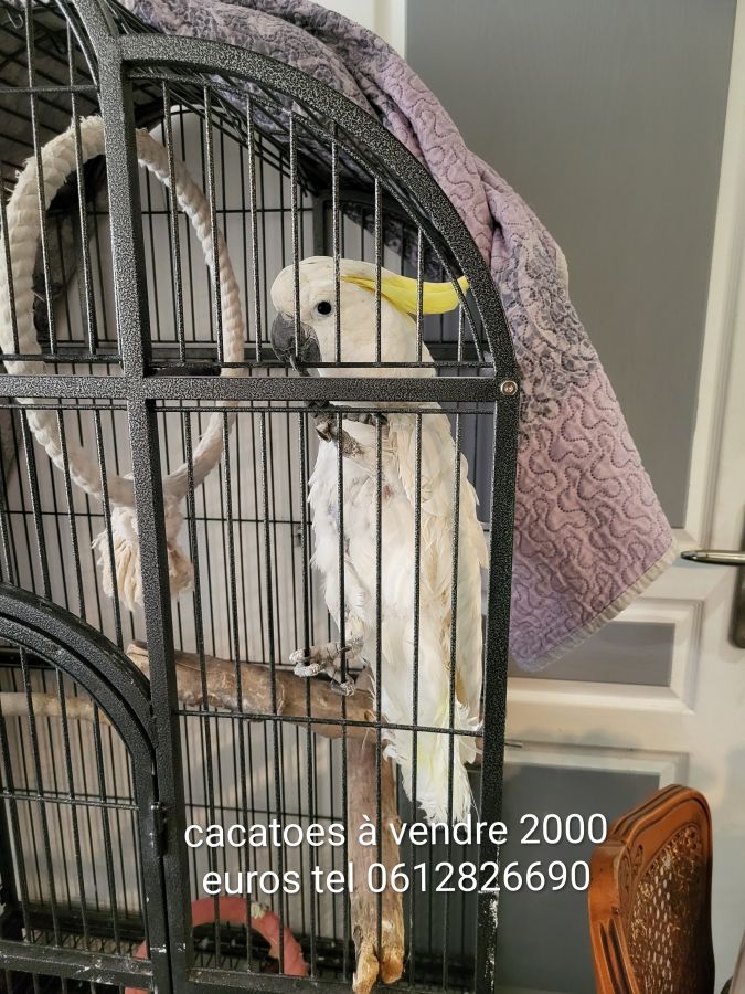 Cacatoes crête jaune mâle 4 ans à vendre avec sa cage..