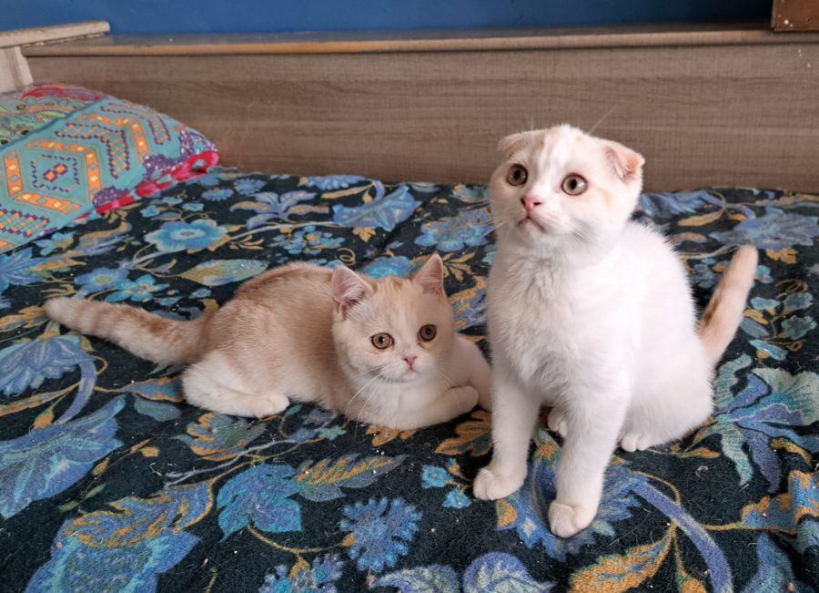 Alaska Scottish fold red tabby et blanc van (motif rare) et Autawa Scottish straight red silver shaded et blanc (couleur rare) sont 2 adorables chatons équilibrés, bien sociabilisés qui feront le bonheur de leur future famille.