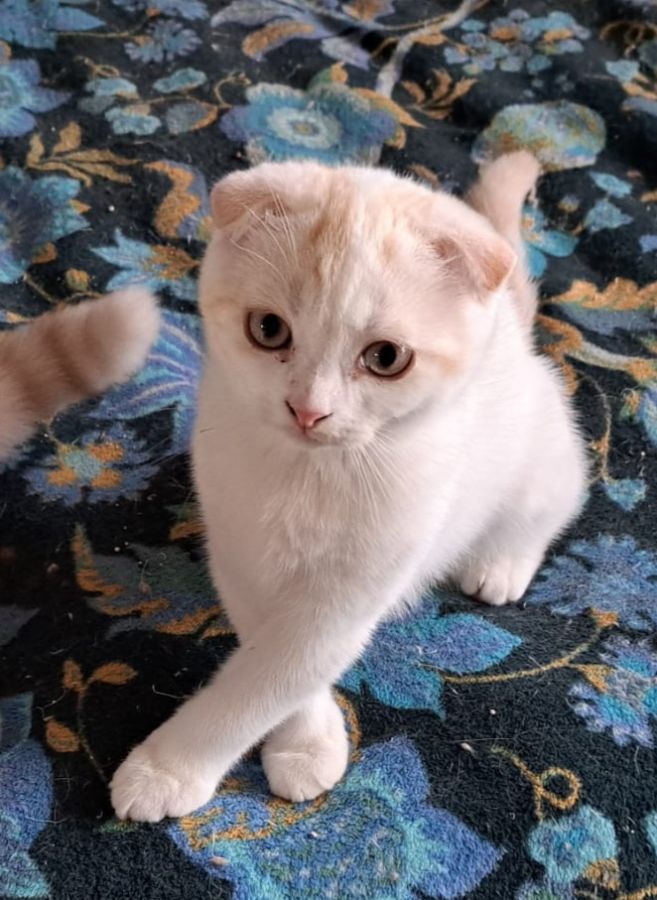 Alaska est un adorable petit mâle Scottish fold red tabby et blanc van (le motif van est rare) qui aura un pedigree LOOF.