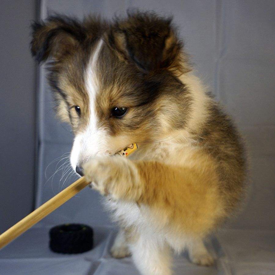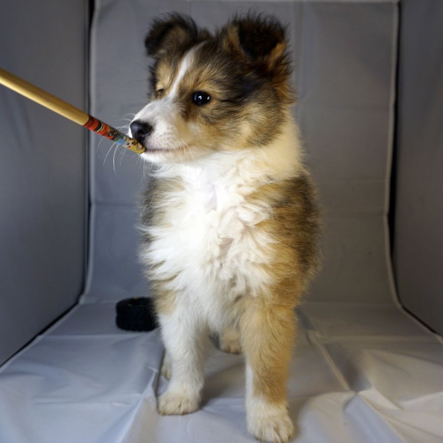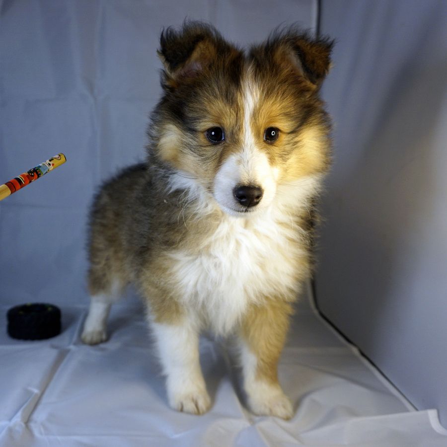 Absol est un petit Shetland fauve plein de vie, et extrêmement tendre. Curieux et joueur, il découvre le monde à son rythme, toujours à la recherche de câlins et de jeux. Derrière son petit air timide se cache un vrai battant, un chiot au grand cœur qui fait fondre tous ceux qui croisent son regard.