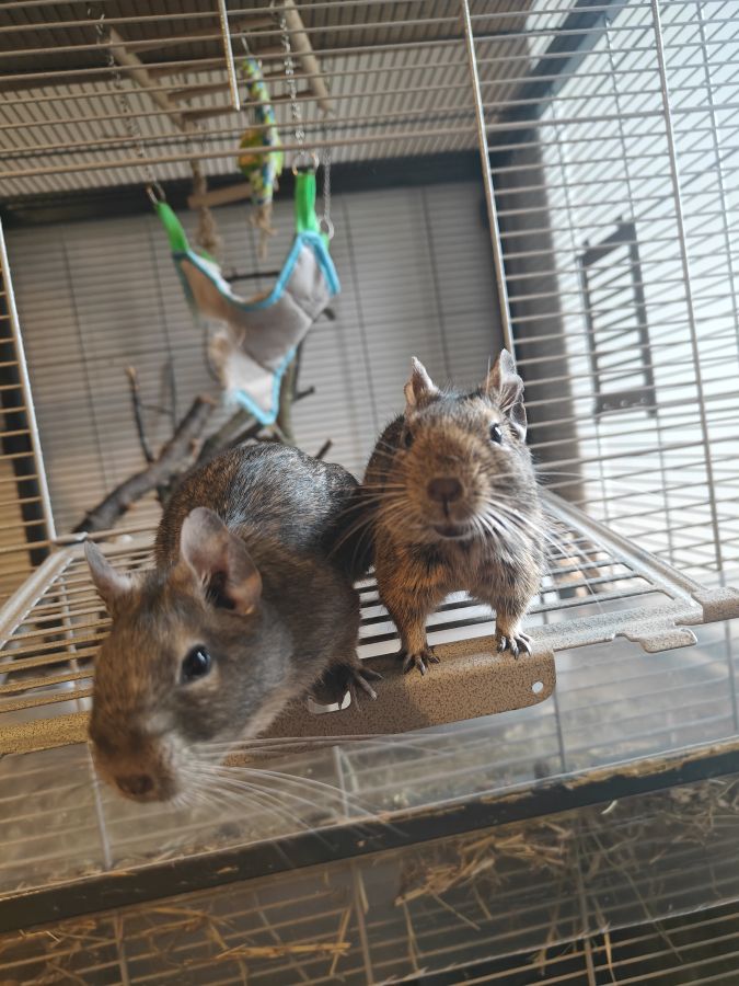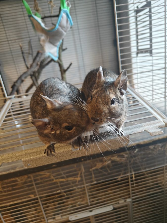 Bonjour, je cherche une famille aimante qui saura prendre soin de Tibili (brune) et Toupou (grise). Je souhaite m'en séparer car elle ne s'entendent pas avec deux autres femelles, et elles sont inséparables, je suis sûr qu'elle sauront s'habituer facilement dans une autre famille. Je prend cette difficile décision car la situation est trop dure à gérer pour moi. Elle sont nées debut 2022. Je pense qu'elle seront plus heureuse sans se chamailler avec les deux autres ! N'hésitez pas à me contacter :)