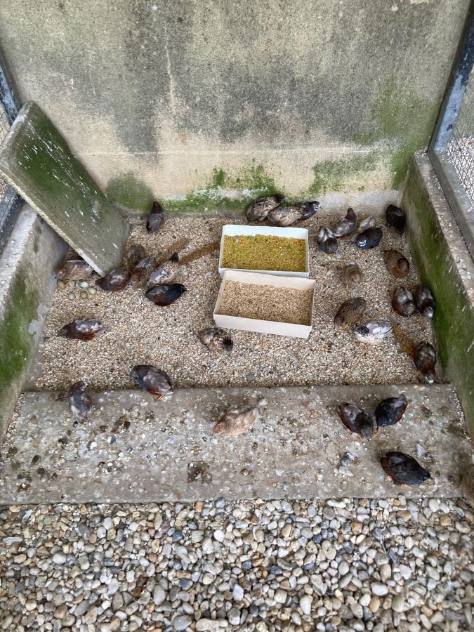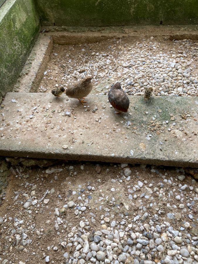 Je vends des cailles de chine nées en 2025, baguées. Ces cailles sont en volières extérieures avec d'autres oiseaux (calopsittes et colombes diamants).Au vu du temps doux et ensoleillé actuellement, des jeunes femelles ont pondus et des petits sont nés. J'ai différentes couleurs des écaillées, des mutations à tête noire, ordinaires, panachés.