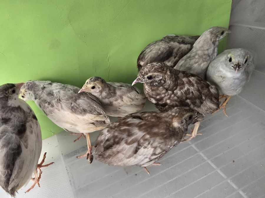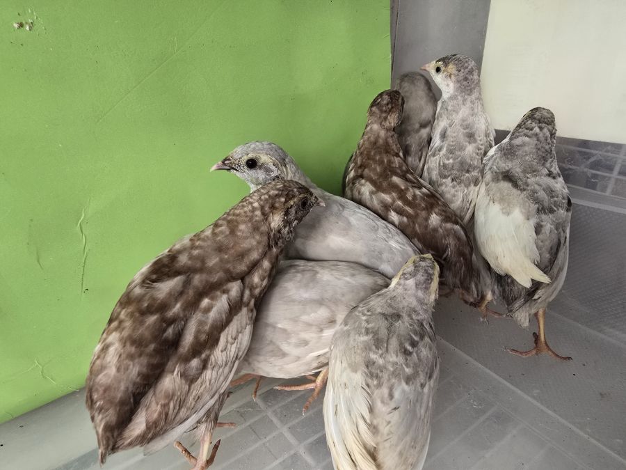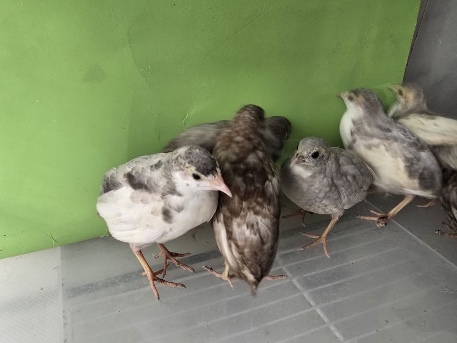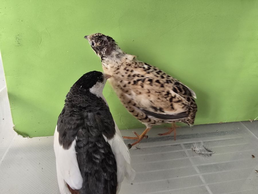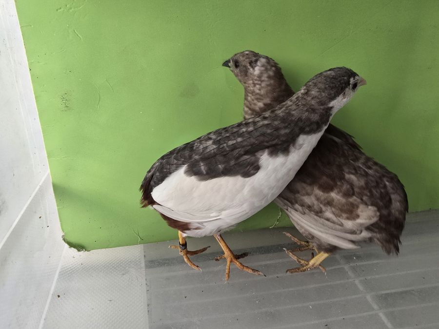Couple de caille de chine nés en mai 2025 Non consanguins Mâle noire, roux, blanc Femelle grise argenté 20€ le c...