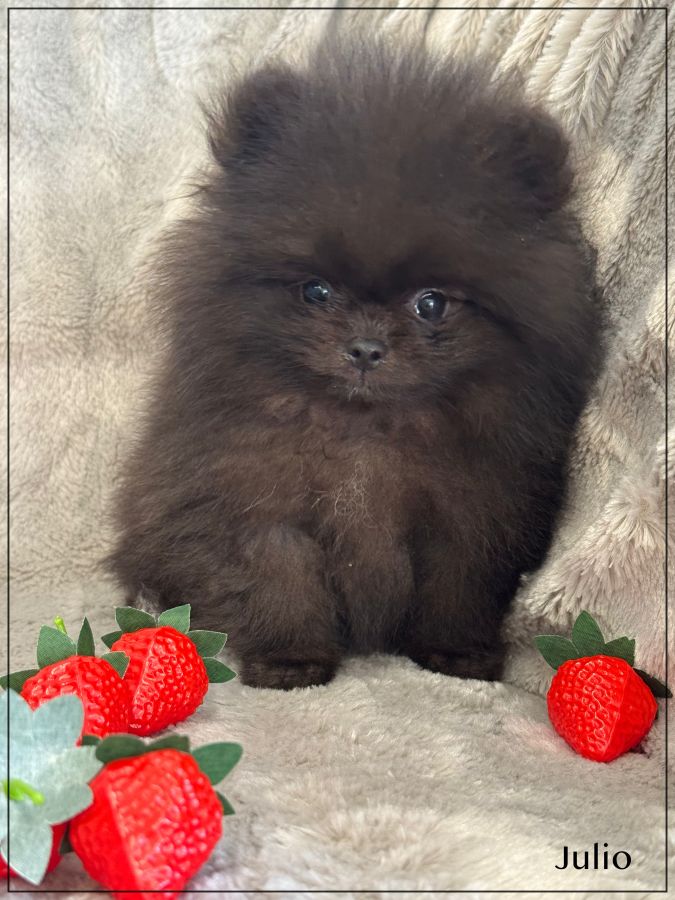 A réserver, Julio, splendide mâle type spitz allemand supposé nain poméranien .Julio est né le 31 juillet dernier ,issu d’une portée de 2 bébés. Il sera disponible mi novembre. Julio sera de couleur noire. Papa et maman sont de taille naine et type poméranien tous les deux, lignées russes et inscrits au Lof. Magnifique chiot ,type boo, belle ossature ,petites oreilles rondes rapprochées, nez ultra typé (court et large),grosse fourrure ,un vrai ours .Julio est vendu pucé, vacciné, certificat de bonne santé ,mutuelle gratuite 3 mois, testé par ADN ,filiation ADN faite avec ses parents, garanti jusqu’à l’âge d’un an en cas de décès suite à des maladies ou malformations héréditaires ou congénitales .Il est élevé dans un univers familial et fera le bonheur d’une famille. Il vous enchantera de part son look, son caractère ainsi que sa fourrure en abondance, facile d'entretien. Nous sommes proches de Lyon .