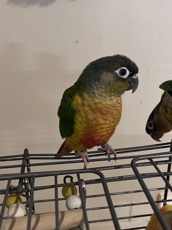 Bonjour couple de conure le mal est du 5 mai 2025 et la femelle est...
