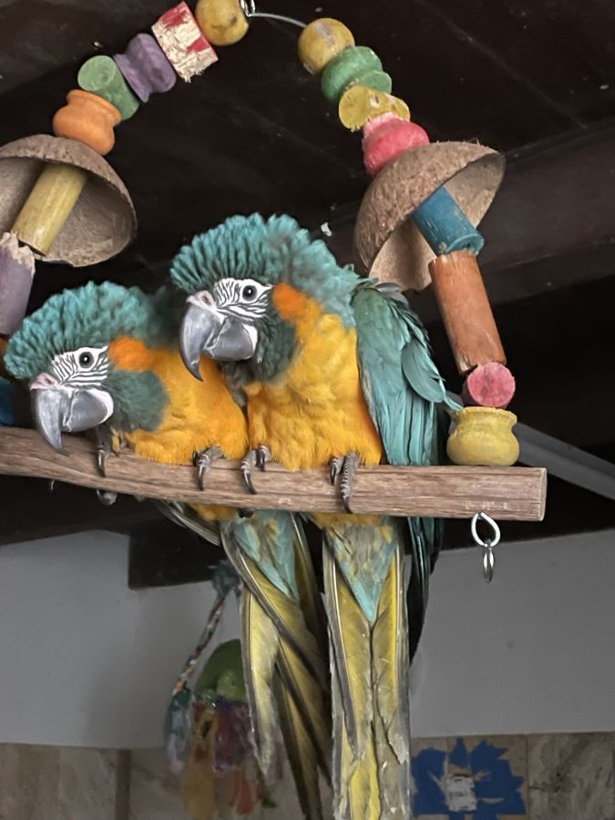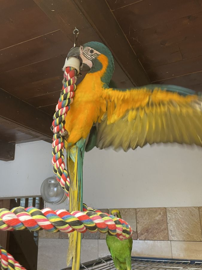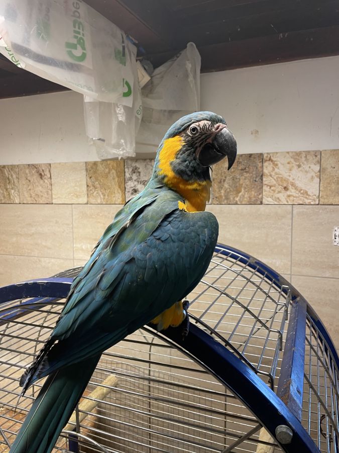 À réserver jeune ara ararauna élevé à la main bague 25 4 mois super apprivoise Contact par téléphone merci