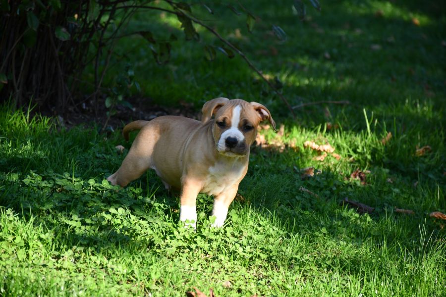 Elevage professionnel et familial d'American staffordshire terrier (amstaff, staff, american staff) vous propose à la vente 3 magnifiques chiots de pure race Amstaff.