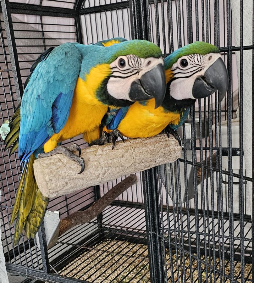Couple formés de Ara Sévère, le mâle est né en 2020 et la femelle en 2021. Maturité sexuelle pas encore atteinte...