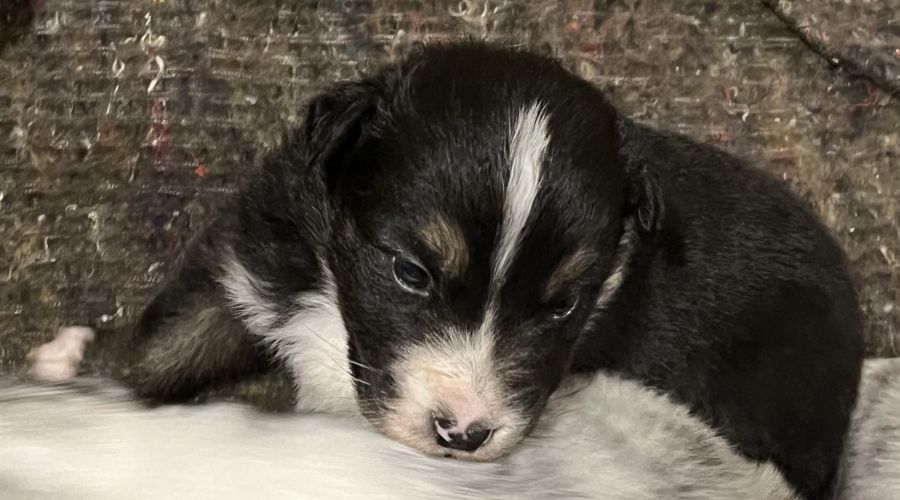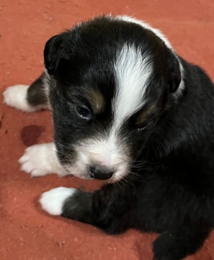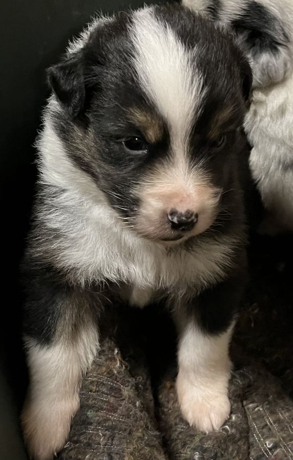 Les chiots sont issus d’une portée de 8 chiots. 4 bleu merle et 4 noire tricolore,