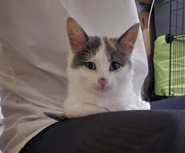 Je m’appelle Plume, je suis une petite minette encore un peu craintive, méfiante et peureuse; je découvre un autre univers et j’ai encore du mal à m’y adapter.