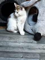 Comme je suis né dans la rue j' ai été un peu malade du ventre mais les traitements me font beaucoup de bien….Cela me donne encore quelques petits oublis en dehors de ma litière mais j apprends à être de plus en plus propre