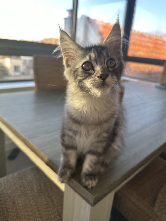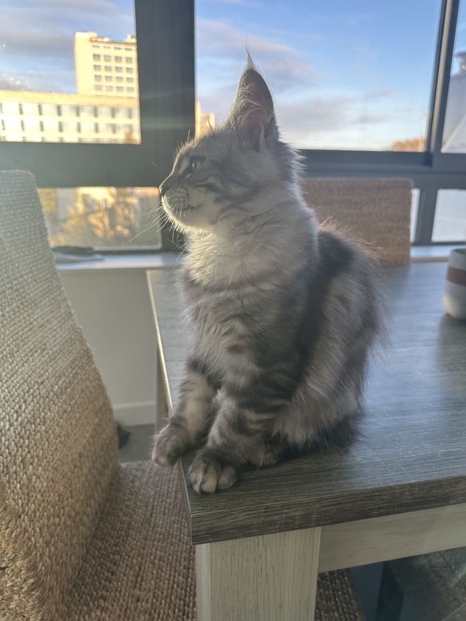 Bonjour, Je vous présente aruka femelle maine coon loof black Silver blotched tabby née le 30 juin 2025 disponible dès à présent une fois le certificat d’engagement signé et les 7 jours de délai passé ( loi 2021). C’est une femelle très joueuse qui adore ronronner et les câlins elle est pucée, vacciné, vermifugée. Pour plus d’information et la rencontrer n’hésitez pas à me contacter.