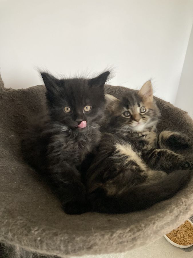 La maman est une Maine Coon croisée Persan, avec un magnifique pelage long et