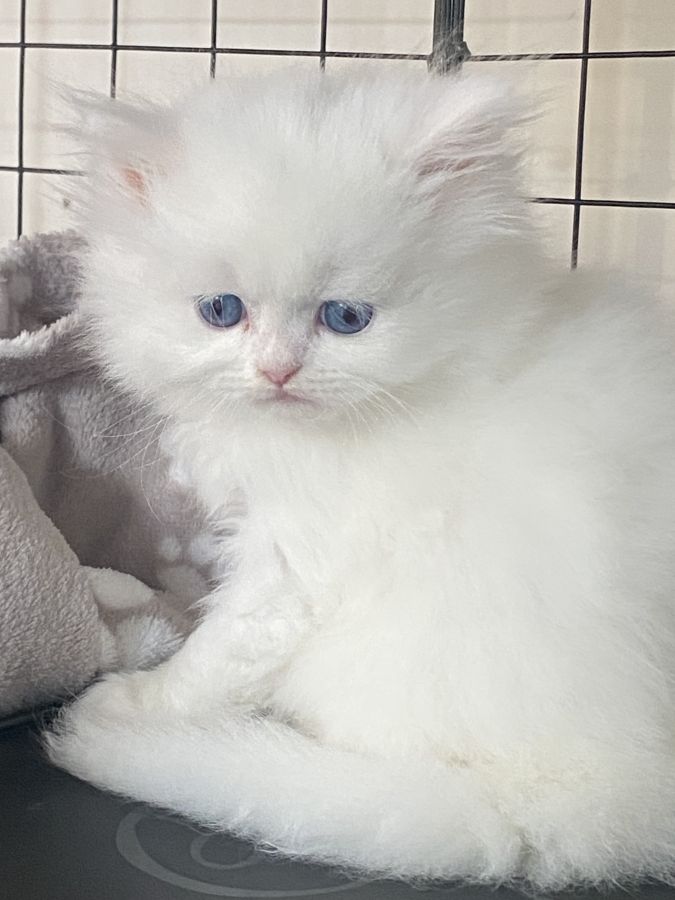 4 Magnifiques chatons Persans tout blancs nés le 27 août, issus de parents Persans, sont à réserver dès maintenant sous contrat pour les accueillir fin novembre ou courant décembre prochain.