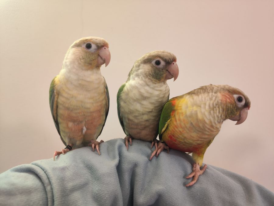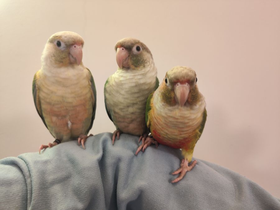 Bonjour, je vends 3 conures de Molina EAM, ce sont des mutation ananas et turquoise cinnamon.