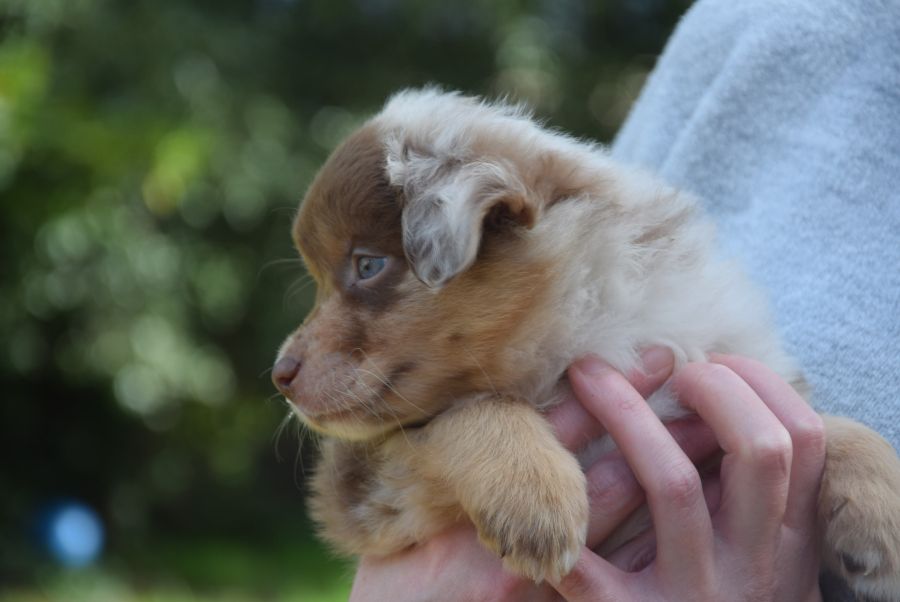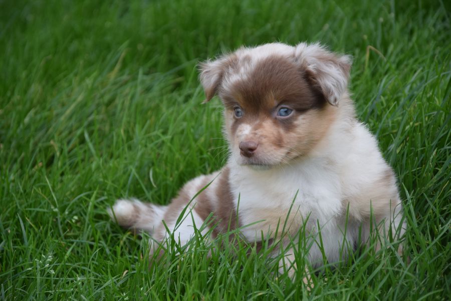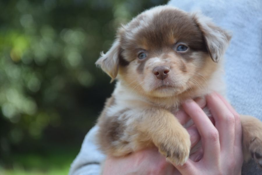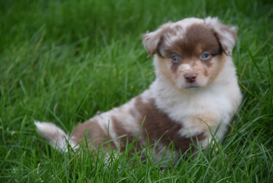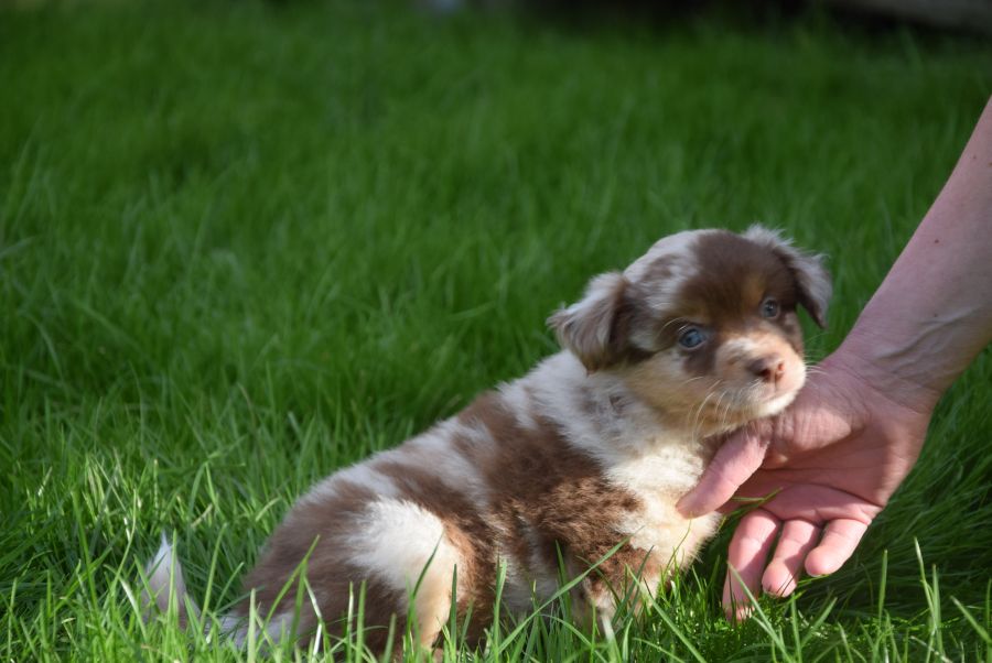 Ma belle Rêva a donné naissance à 6 magnifiques chiots bergers américains miniatures, elle a bien travaillé : seul le magnifique petit Atlas est disponible, un chiot curieux, câlin et malin.