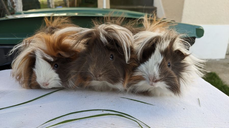 Éleveur amateur de cochons d'Indes à poils longs depuis presque 20 ans, propose à l'adoption 3 mâles péruviens tricolores ardoises frères nés le 12 juillet 2025. A adopter de préférence par 2. Très bon type, ils sont habitués à être manipulés et à manger des fruits et légumes frais. Ils vivent en intérieur.