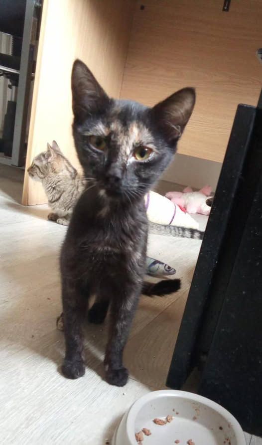 Coucou, moi c'est Kiwi, une jolie chatonne écaille de tortue. Je suis une minette pleine de douceur même si j'ai eu un passé compliqué et que je reprends du poids doucement.