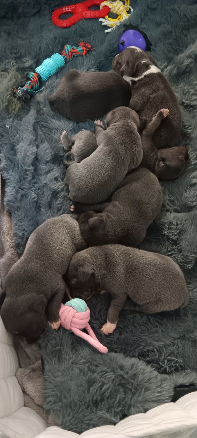 Nous sommes ravis de vous présenter notre portée de 7 magnifiques Staffordshire Bull Terrier inscrit au lof