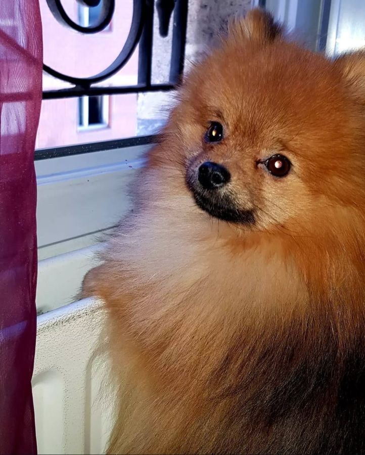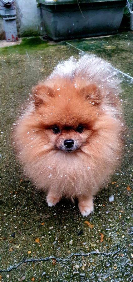 Il a un très beau poil fourni et une belle morphologie typique du Spitz.